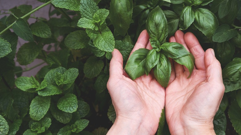 Mint might not be the first herb that comes to mind when cooking seafood, but it's an incredibly effective way to enhance and neutralize the flavors of fish. Barton Seaver highlights mint as a flavor that "acts much like acid in that it accentuates the inherent flavors of whatever it's paired with. So just a few sprigs of mint, the leaves torn into small pieces and scattered atop just before serving, and you end up with this wonderful aroma that pairs so beautifully with the flavors of seafood." This makes mint a surprisingly ideal ingredient in lots of seafood dishes. The cool, refreshing notes of mint can even cut through the richness of fatty fish, much like a squeeze of lemon would, adding brightness and a dimension of complexity.