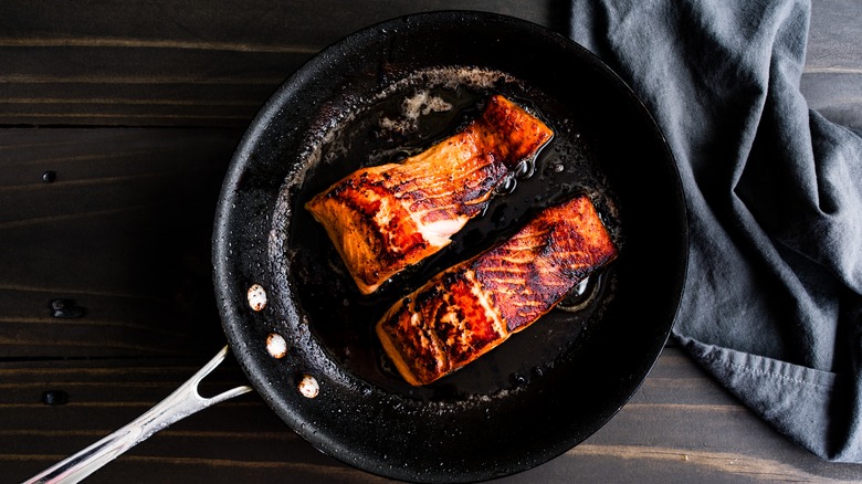 Cooking fish at high temperatures can create a strong, lingering fishy aroma that many find unpleasant. Chef Barton Seaver explains that when fish is cooked at high heat, "fat and moisture exude from the fish, hit a hot pan or grease, vaporize, and then go up into the air," releasing a powerful smell. This isn't just about odor — it directly impacts the taste of the fish. This is because the way something smells has a huge impact on the way it tastes. When fish is cooked at high heat, the strong smell intensifies the fishy flavor, which can be off-putting.