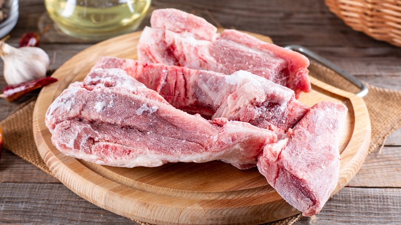 Although it is safe to eat freezer-burned food, there are some limitations to reheating frozen meat. Generally speaking, meat should not be consumed after specific lengths of time. According to the FDA, different types and cuts of meat will have different expiration dates. For example, steaks and chops can be frozen for four to 12 months, but bacon and sausage can be frozen for only one to two months. If meat has been stored longer than it should have been and has a funny smell, there is a good chance it has gone bad.
