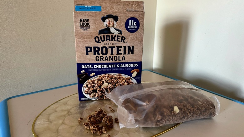 Joining the race at the halfway point is the most recognizable of the bunch: Quaker, a brand that's been around since 1877. The signature Quaker man stamped on the oat company's products has lined shelves for over a century, offering a warm smile and a familiar face. Whether or not you're in for a nutritious and yummy treat depends on which of its granolas you're purchasing.