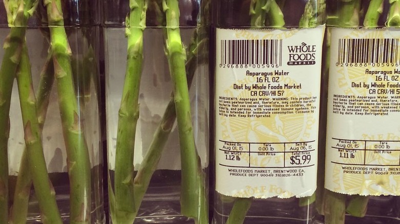 Even worse at the time, Whole Foods was also selling entire bunches of fresh asparagus for $5, highlighting the option to hack this water at home on the cheap. While the asparagus was said to impart some amount of nutrition to the water, others took the idea and ran with it. One user joked on X, "You know #wholefoods is struggling when they're selling #asparaguswater for $6." Whole Foods asparagus water's brief reign of terror was quickly quashed.