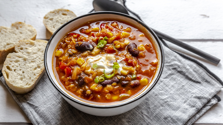 It should be noted that liquid smoke is a somewhat controversial ingredient. Its critics argue that the seasoning is a shortcut that can't achieve the true flavor of a smoker, while its proponents say they can hardly tell the difference. The trick is understanding that a little goes a long way, and not letting the liquid smoke take over the dish. When it's used properly, however, it can do a lot of heavy lifting, its smokiness accentuating the spices in chili and more. It's particularly great for vegetarian versions, like a three-bean vegetarian chili, where liquid smoke can bring some extra umami flavor, filling in where meat usually would.
