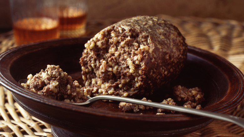 The U.S. ban on lung meat also extends to dishes that contain lungs. That means haggis is banned in the United States. For those who aren't familiar with Scotland's national dish, it consists of a sheep's stomach stuffed with a mixture of lungs, heart, liver, onions, oats, suet, and spices. It may sound off-putting to outsiders, but many say you shouldn't knock it until you've tried it. Unfortunately, you can't have the real deal stateside. Other lung dishes that you can't have without swapping out the lungs for something else include Austrian beuschel (lung stew), Greek kokoretsi (offal sausage), and Chinese "husband and wife" lung slices.