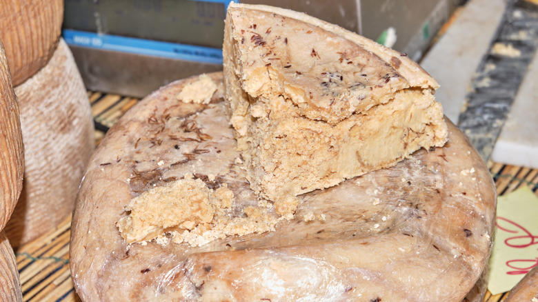 Dubbed the world's most dangerous cheese by Guinness World Records, casu marzu is a specialized cheese that comes from the small Italian island of Sardinia. There are many delicious, drool-worthy Italian cheeses, like mozzarella and Parmesan, but casu marzu isn't one of them. It does start with normal Pecorino Romano cheese, but that isn't where it ends, and it's the details that make all the difference here.