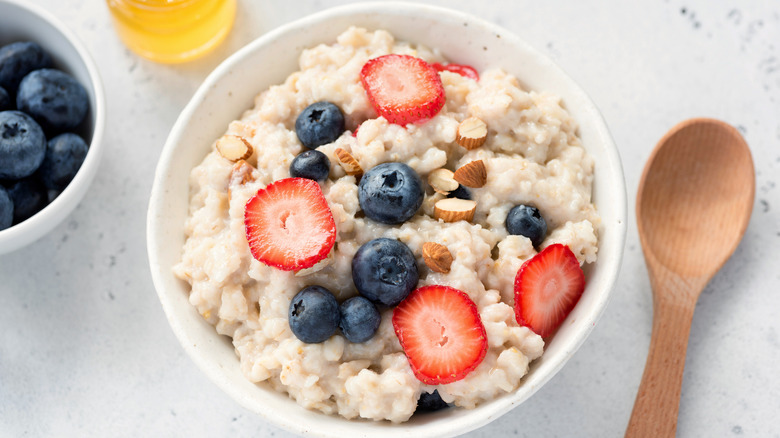 Oatmeal is a sensible start to the day, as it contains fiber, complex carbs, and protein. You can have it plain or elevate your oatmeal with milk, sugar, or fresh fruit. While we don't know whether Marilyn added anything to her cooked cereal, we do know that she may have complimented it with orange juice or stewed prunes, crisp toast with butter, and a cup of milk or "weak cocoa." That may seem pretty basic, but it sounds a lot more appetizing than another unusual breakfast Marilyn Monroe ate. According to an interview the star gave to Pageant magazine in 1952, she also liked to whip raw eggs into a glass of warm milk and have that with a multivitamin pill.