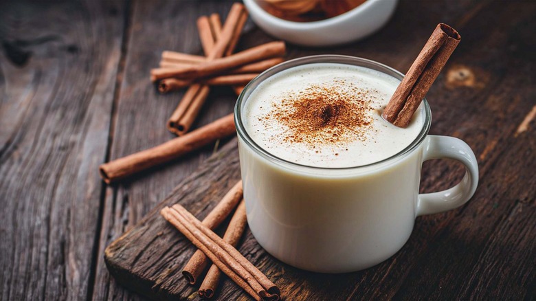 Eggnog may seem like a pretty decadent drink to end the day with, but it's also rich, creamy, and soothing, so it may have been the perfect way to unwind after a long day. A classic eggnog recipe includes milk, cream, sugar, and eggs. Some people add cinnamon or nutmeg, and more than a few throw in a shot of rum or brandy to make it extra festive. Considering that Monroe liked to drink raw eggs whipped with milk for breakfast and she was a fan of ice cream sundaes, it's not surprising that she also loved this delicious dessert-like drink.