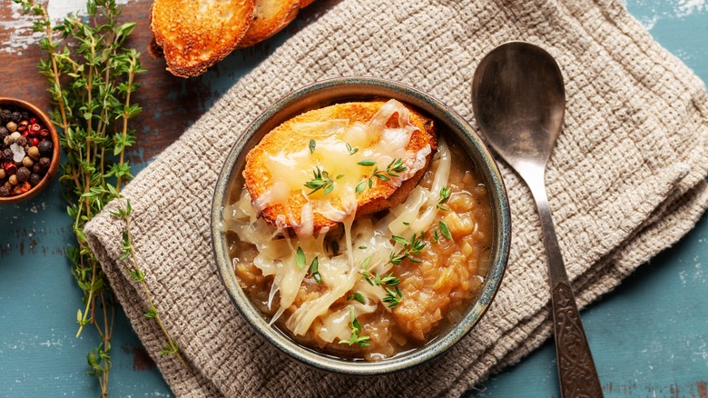 Comforting and classic, onion gratin soup is the perfect dish for a chilly night. Also called French onion soup, the dish typically features silky sauteed onions, wine, beef stock, and crusty bread or croutons topped with cheese that's broiled until melted and golden. Many people use Gruyere or Swiss cheese, although some people swear French onion soup tastes heavenly with a simple swap of Comté. Either way, it's a decadent dish that's entirely fitting for Hollywood royalty.
