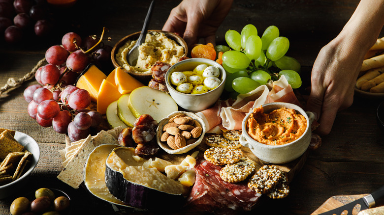 As of this writing, the store only offers a meat, cheese, and fruit board since, according to Reddit, it got rid of its meat and cheese platter. The new platter has cubes of cheddar and Gouda, salami, soppressata, and grapes. By picking up some additional treats like pretzels, honey, and chocolate-covered almonds, you can transform the basic platter into the charcuterie board of your dreams.