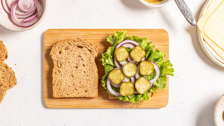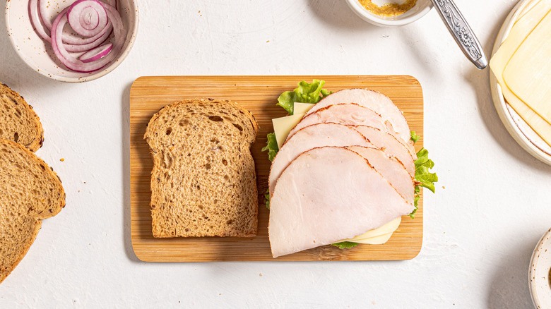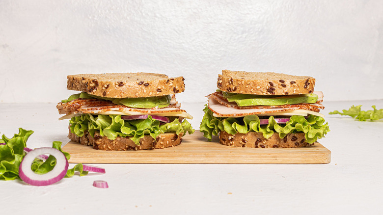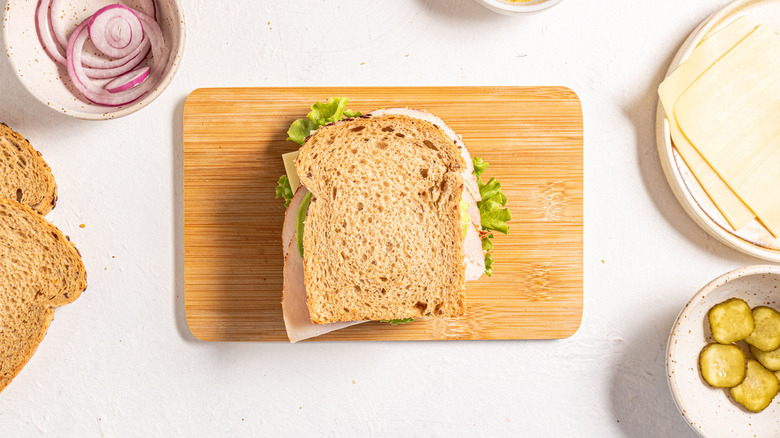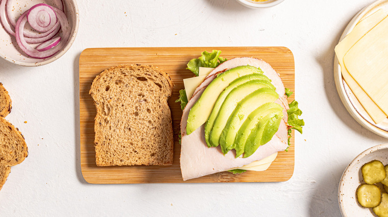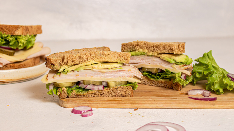The famous $5 Sprouts Farmers Market sandwich is made with just five ingredients, not counting the bread: turkey, provolone, lettuce, onion, and mustard. Manolova, however, makes a few tweaks to the basic formula. As she tells us, "I slightly changed the original by adding pickles for some tanginess and acidity, avocado for creaminess, and gouda cheese instead of provolone." Of course, you may feel free to further modify the sandwich. As Manolova says, "I like how versatile this sandwich is. You can easily swap the cheese, meat, or other toppings to your liking and preferences."