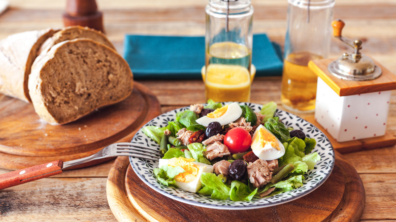 Though the Niçoise salad may seem like an intricate dish, the staple salad is actually quite simple to put together. A traditional Niçoise salad consists of chopped hard-boiled eggs, canned tuna, green beans, olives, potatoes, lettuce, and a vinaigrette dressing. Though it's unclear how Stewart will put her own personal spin on the dish in her upcoming book, the salad itself is quite simple but incredibly filling, with lots of fiber, protein, starches, and healthy fats to keep you full for a long period. It also has a no-fuss sort of makeup that leans into plain ingredients and simple components rather than intricate preparation methods.