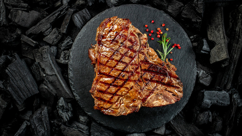 Now let's get to the meat of it all, the porterhouse steak. According to Stewart, her upcoming book includes a recipe with instructions on "how to cook a small porterhouse steak." Though this may seem like an overly simple recipe to include in a 100th cookbook, Stewart noted that "many people just don't know how to cook a steak, so I wanted to put that in." And though steak is quite simple in appearance, often only consisting of the meat itself with simple seasonings, many people tend to be intimidated by the dish. So a recipe for a porterhouse is perfectly placed among Stewart's other recipes.