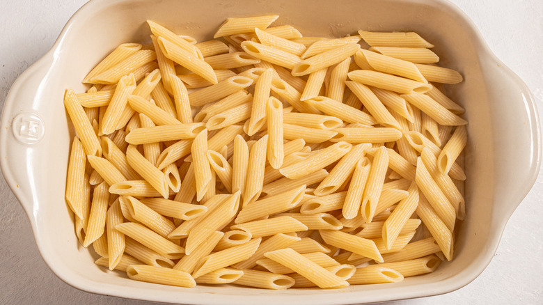 - Drain the penne and place it in a 9x12-inch baking dish.
