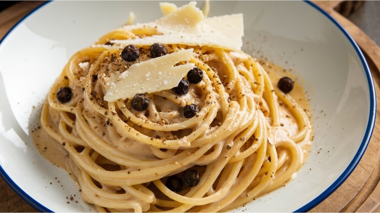 Sometimes it's the simple dishes that have the biggest impact and endure the longest. That's the case with cacio e pepe, a supremely tasty pasta that utilizes just three ingredients. It's basically just thin pasta like spaghetti tossed with Pecorino cheese and black pepper. A splash of leftover pasta water helps give the pasta a creamy consistency. It's a classic Roman dish that's steeped in history.