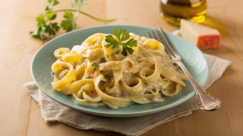 It's easy to see why fettuccine Alfredo is a staple at so many Italian restaurants. This creamy pasta dish is so simple to make, but utterly decadent. A classic fettuccine Alfredo features fresh fettuccine noodles tossed with butter and Parmigiano Reggiano cheese. Common variations include the addition of cream, parsley, veggies like mushrooms, and protein like chicken. Many will tell you though that there is only one place to get a truly authentic fettuccine Alfredo and that's at its birthplace in Rome.