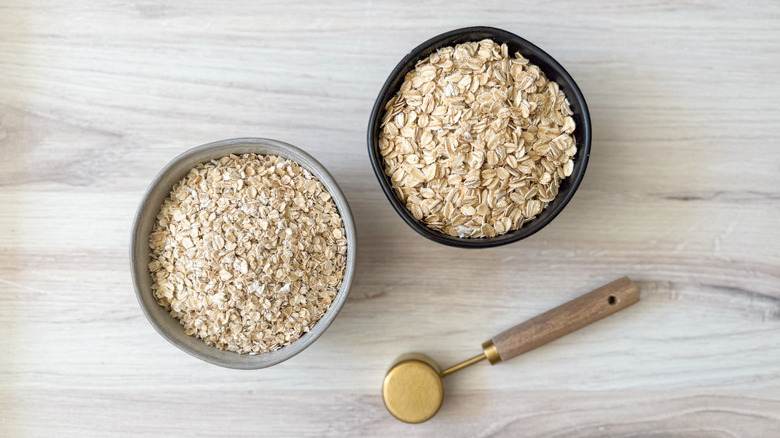 Oats are commonly found in three varieties: steel-cut, rolled, and quick or instant. For making overnight oats, old-fashioned rolled oats are the goldilocks choice, as they are just right for absorbing the milk while still maintaining texture for a nice bite. Steel-cut oats do not soften enough without the heat of cooking, and quick oats will become mushy in the process. Although it might seem like quick oats would make the most sense for a no-cook recipe like overnight oats, they are too highly processed to absorb all of the liquid and will yield a soupy texture, rather than a thick and chewy bite.