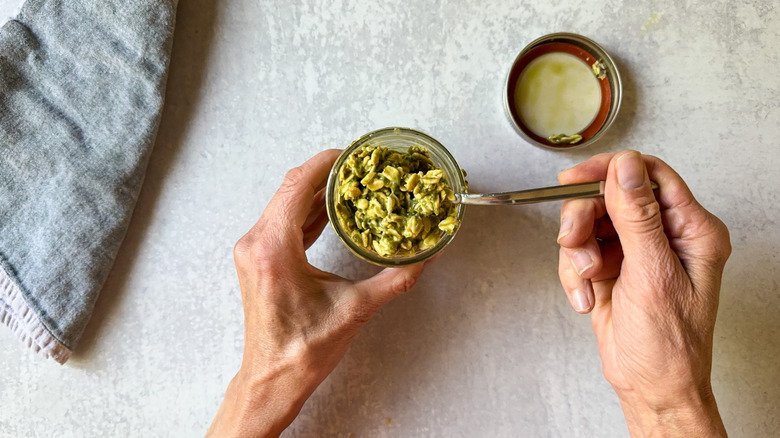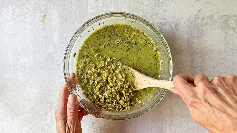 - Let the oat mixture sit for 10 minutes, then stir again.