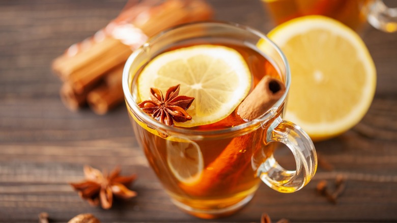 Cold season is also catching-a-cold season, so soothe your senses with a spiced rum hot toddy. Spiced rum is typically made of molasses, citrus, and spices. You can use it in a hot toddy by mixing your shot with 1 ounce of lemon juice, 1 teaspoon of honey or maple syrup, and 1 cinnamon stick. Complete the drink by adding warm water, hot tea, or even ginger ale. The possibilities are endless.
