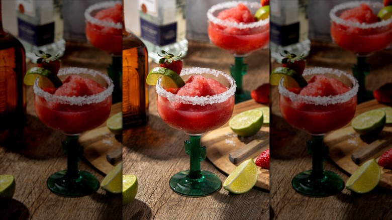 While lemon mimics the citrus character of a sweet-and-sour mix and the orange triple sec of a classic recipe, fruity variations like watermelon, strawberry, cherry, and even blue raspberry offer ways to infuse fun alternative flavors into your cocktail. Whiz in a de-stemmed and seeded jalapeño for a little kick. You can also switch up your spirits. If you're familiar with the difference between tequila and mezcal, you might opt to use the latter, as the smoky quality can be a nice balancer for the sweetness of your ice selection.
