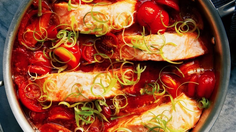 A classic one pan option that is loved by many, including Ina Garten, is roasting chicken, potatoes, and vegetables in the same dish. As well as making cooking the dish a breeze, this method also allows the juices from the chicken to coat both the veggies and potatoes as everything cooks together, meaning it will all be packed with flavor.