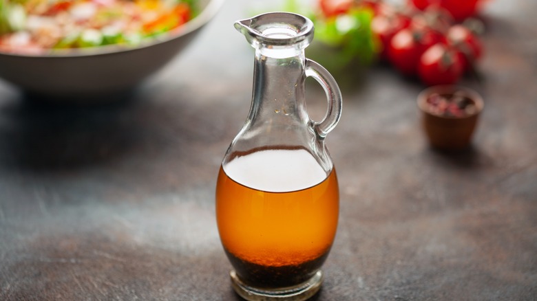 The great thing about Garten's vinaigrette is that it uses ingredients you likely already have in your fridge and pantry. Fresh lemon juice, extra virgin olive oil, and a pinch of salt and pepper are all you need — just mix it up well, then keep in an airtight container in the fridge until you need it for your salad. You can also customize it in whatever way you want — herbs like thyme or basil will add a freshness, whereas a drizzle of honey will give it a sweet note.