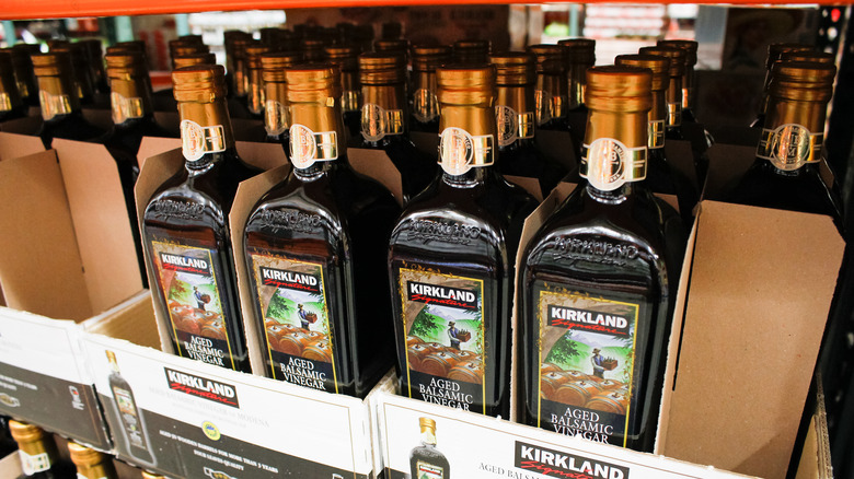 Costco's Kirkland Signature is the bulk retailer's private-label brand, named after its headquarters in Kirkland, Washington, that has garnered a cult following and is widely known for its often high-quality products at low prices. In the same way that there's a major brand behind the chain's chocolate-covered almonds, Costco doesn't make its balsamic vinegar in-house. Instead, it partners with an established producer to do it for them, and purchasing in large quantities allows Costco to pass the savings down to its customers. Luckily, if you pick up a bottle of Kirkland Signature Organic Balsamic Vinegar of Modena, the name of the producer is proudly displayed right on the label.