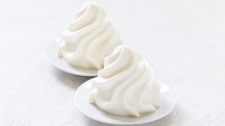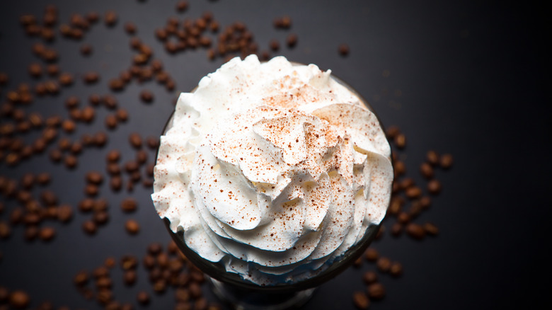 If you'd like to give frozen whipped cream a try and have time for a more elegant preparation, whip up a batch of whipped cream and add it to a piping bag with a star tip, then pipe perfectly sized swirls onto a sheet and repeat the freezing process. You'll dazzle your friends and house guests when you add meringue-shaped mounds to their after-dinner coffees. You can even add frozen whipped cream to desserts like ice cream or no-bake pies.