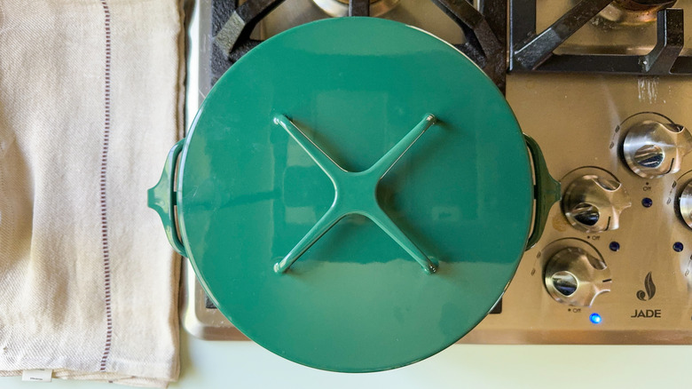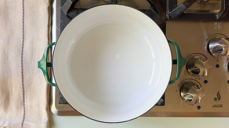- Return the soup to the pot, cover, and keep warm while you make the garnishes.