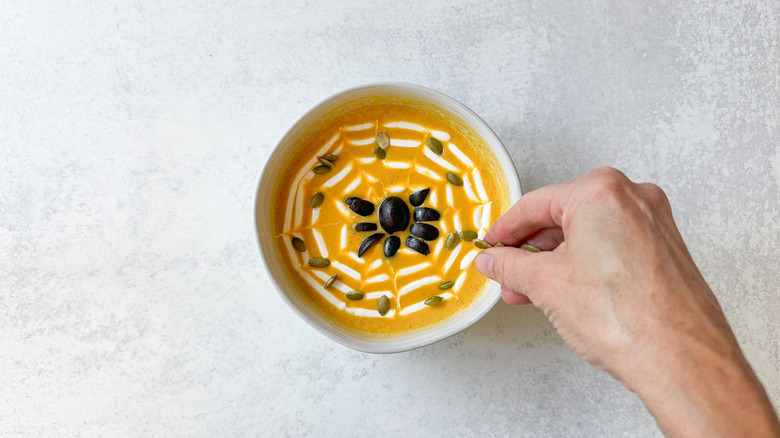 - Sprinkle the soup with a few pumpkin seeds, if desired, or serve them on the side.