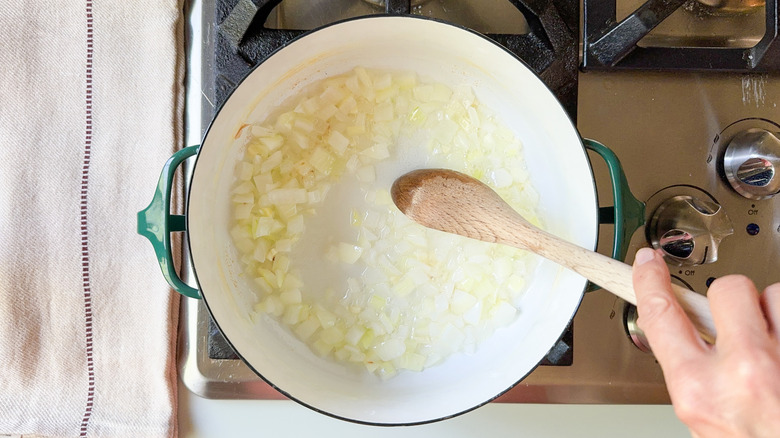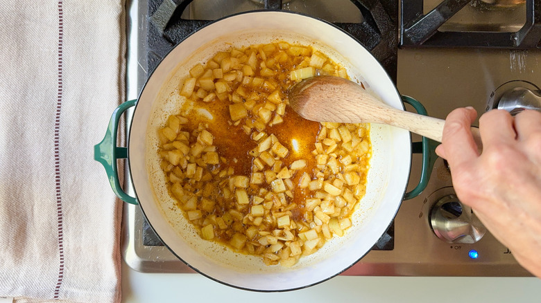 - Add the curry powder, salt, white pepper, coriander, ginger, and cayenne. Cook and stir for about 1 minute, until the spices are fragrant.