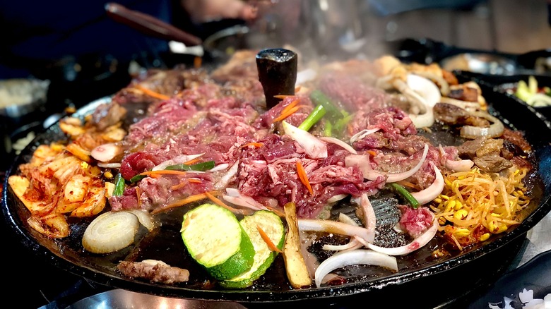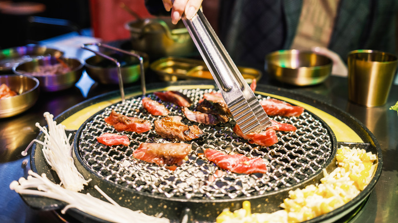 To ensure that you and your guests are having a top-tier Korean barbecue experience, it's crucial to have the proper equipment — plus, you have to know how to use it. David Shim told Chowhound that items such as a tried-and-tested grill and proper scissors will facilitate a great experience. "I always love having scissors available," the chef says. "They're a super versatile item and allow the guest to cut many different items tableside without a cutting board and a knife. People can use them at home while cooking as well."