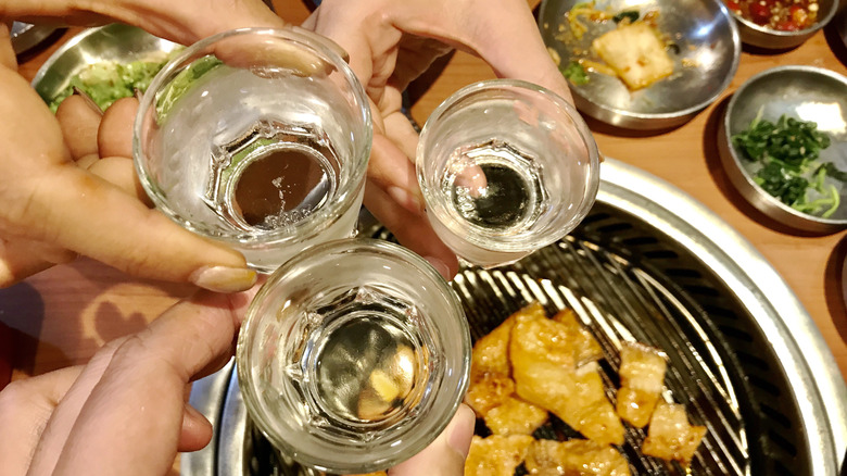 The chef went on to share his own go-to drinks, adding, "A personal favorite of mine at Korean barbecue is soju bombs! They add to the entire dining experience. Line up the beer glasses with soju glassing sitting on top, and when everyone is ready, knock them down like domino bricks and let the fun begin. For a more unexpected pairing, I also like to drink rosé because it's a light and refreshing option." A crisp white wine or a straightforward red would also complement a spicy ssam.