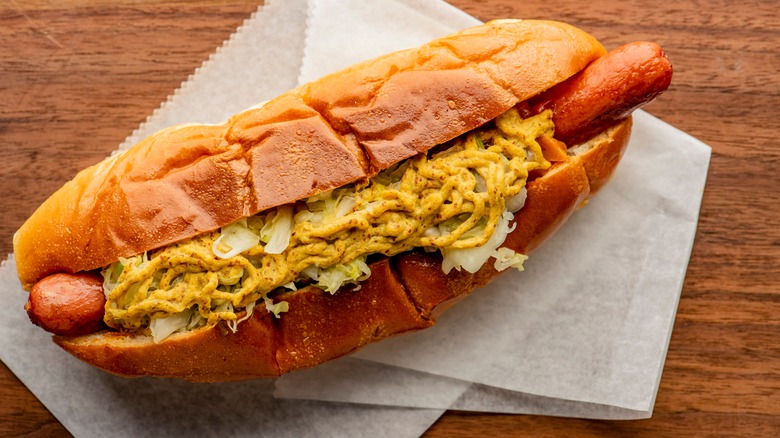 A trip to the ballpark just isn't complete without a hot dog. This handheld staple food feels like the perfect match for America's favorite pastime — and its presence is undeniable, from Major League Baseball stadiums to Little League fields. In fact, MLB fans alone devour millions of hot dogs each season, with countless more consumed at non-MLB games. While that's still far fewer than the staggering number of hot dogs served at Costco, it's an impressive figure nonetheless. But how did this humble sausage become a baseball tradition? To uncover the story, we have to travel back to the late 1800s — though, as with many food legends, the "real" lore is a bit tangled.