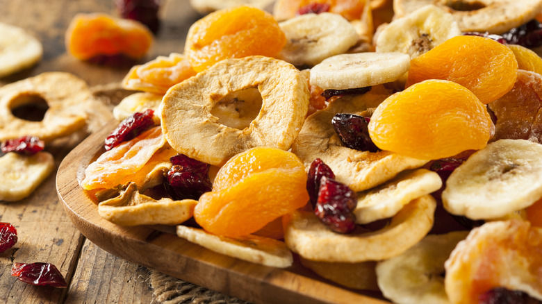 Dehydrated fruits like prunes, raisins, and apricots are popular snacks often added to trail mixes, baked goods, or savory dishes. It's also easy to upgrade dried fruit with a sour candy twist. You can buy bags of dehydrated fruit at the store, but some commercially available options contain added sugars or preservatives, so make sure to read labels if you want to avoid unnecessary additives. Unfortunately, dehydrated fruit loses some heat-sensitive nutrients, such as vitamin C, during the drying process. However, it is still a healthy snack and contains minerals like potassium and magnesium.