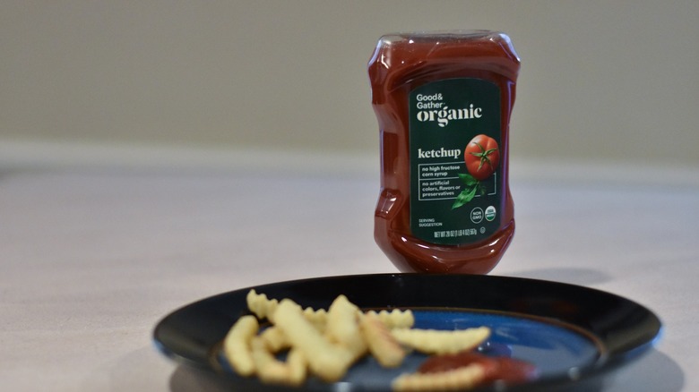 If you're at Target and want something organic, look for the Good & Gather brand. This is Target's store brand for organic items, including ketchup. There aren't as many size options, but it tastes just like the Market Pantry ketchup. Good & Gather is made with organic tomato concentrate, organic sugar, organic vinegar, salt, onion powder, and spices. It doesn't have high fructose corn syrup or artificial ingredients. Overall, it's tasty and has a good consistency, but isn't anything out of the ordinary. When the Market Pantry option is on the same shelf for half the price, it's hard to justify spending more on this one unless you are a true fan of organic.