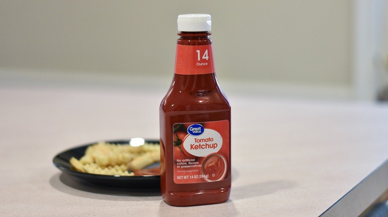 Walmart's store brand, Great Value, is one of the better store brands out there and has a rich, balanced flavor. It tasted a bit sweet, but that worked well with the acidic tomatoes and it wasn't overwhelming. Our favorite aspect of this ketchup was that it is very thick, making it ideal for dipping. It's made without artificial colors, flavors, or preservatives and comes in four different sizes, plus low-sugar, traditional sugar, and jalapeño flavored varieties. The 14-ounce option is particularly great because it doesn't take up a lot of room in the fridge and still has a no-drip squeeze top. Most smaller ketchup bottles have screw tops that make it hard to get the condiment out of the bottle, but this one is squeezable.