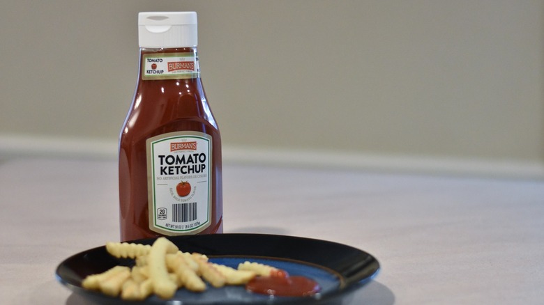 Burman's ketchup is also a bit thinner than some brands, but not quite runny. It still works to dip fries and tots, but is a bit better when put on a burger or other sandwich. The flip lid has a drip-free nozzle on the top, which works well to keep the bottle clean. Burman's only makes standard ketchup, so don't expect to find anything with less sugar or salt. It's made with the same ingredients as Heinz and has a similar nutritional profile. The main difference between Burman's and other brands is the texture and the slightly more acidic taste.