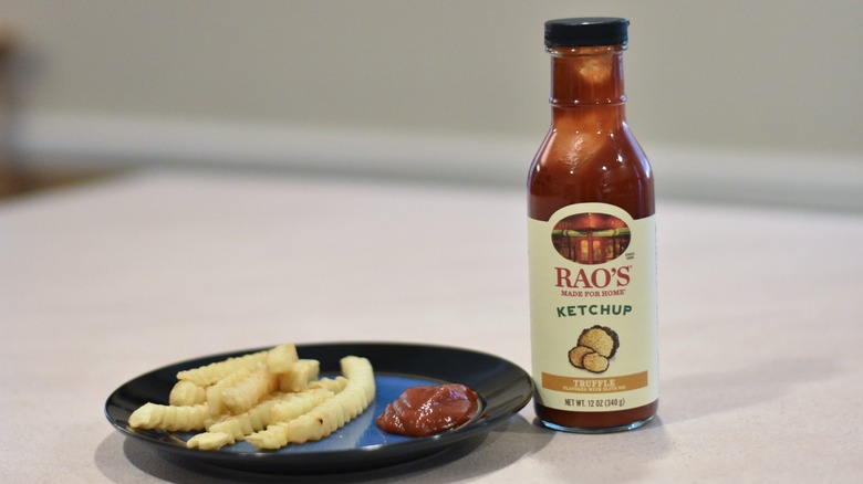 You can get traditional Roma tomato ketchup from Rao's, but it was hard to pass up the black truffle-infused flavored option when we saw it on the shelves. It was one of the only flavored ketchups that we tried and it did not disappoint. The rich truffle flavor was delicious and made even basic fries into a gourmet side. It was one of the thickest ketchups in our taste test, which we liked once it was on our plate. The glass bottle and large open top can make it hard to get just the right amount, however.