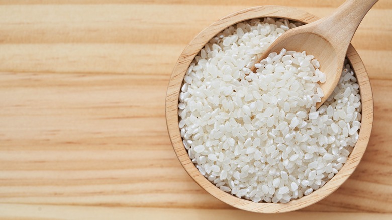 Since starch is the key ingredient in thickening agents, short to medium grain rice such as Arborio is the best bet, as it tends to be starchier than long grain rice. But if all you have is a huge burlap bag of basmati in your pantry, feel free to use what is at hand. Pre-cooked rice has far less starch than uncooked rice, but it will still work in a pinch.