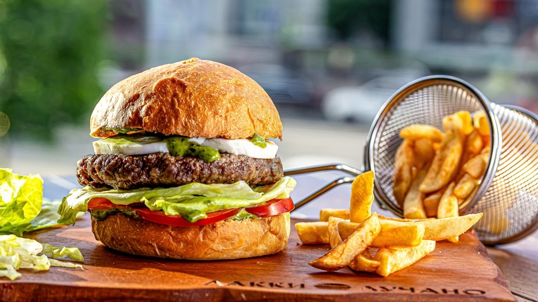 Lamb — not to be confused with mutton — is a very unique meat. Known for its wild, gamey flavor, lamb can be an acquired taste, but once you learn to appreciate the different earthy notes, it'll be hard to go back to beef. One way to introduce more lamb into your diet is to cook it in a familiar form, such as a lamb burger. The key to a great lamb burger lies in balancing juiciness and flavor, so choosing a cut with the right ratio of fat to lean meat is essential. For the best results, go for a shoulder cut.
