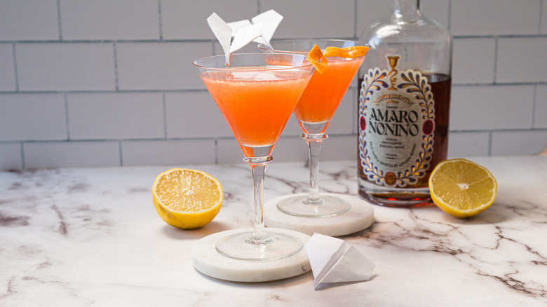If you're unable to find Amaro Nonino or want to experiment, several other Italian amari can be used as substitutes. Options like Ramazzotti, Montenegro, Averna, Meletti, or Cynar can work well, and each will impart its unique characteristics to the drink. Keep in mind that the resulting cocktail may taste slightly different from the original, but that these nuances will not be noticed by people new to the drink. And whatever amaro you use, don't forget to double-strain your cocktail. If you're into further substitutions, you can even play with the Aperol that gives the drink its signature hue.