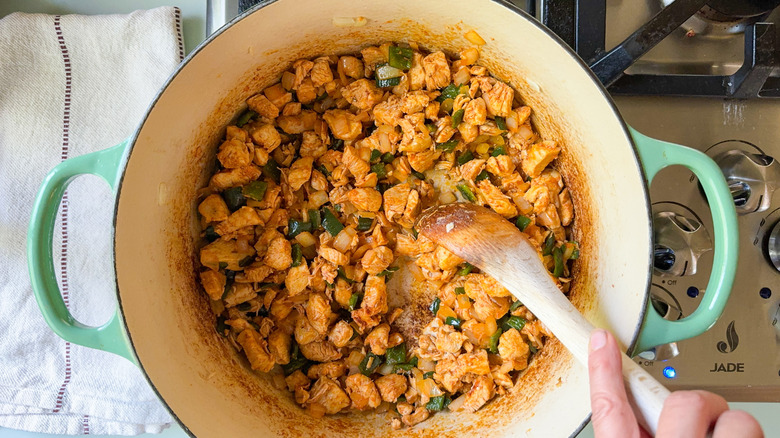 Add the chicken and saute until just starting to brown (about 10 minutes).