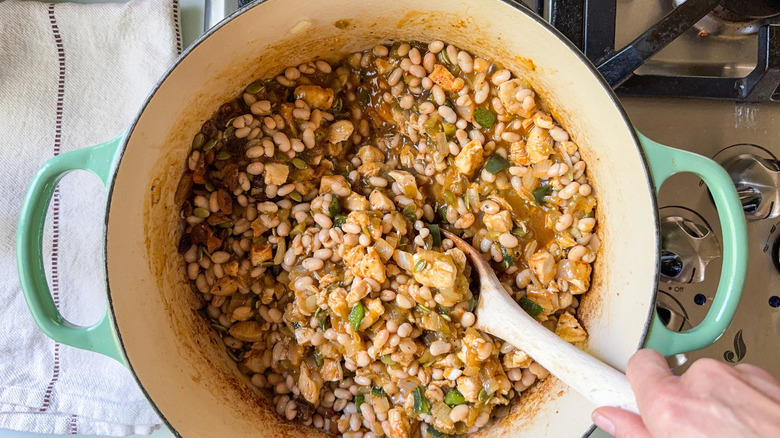 A big pot of chili simmering on the stove feels so comforting and familiar, like a warm hug in your kitchen. Most people think of the chile con carne, one of many Mexican-inspired dishes that was invented in the U.S., when it comes to a bowl of this meaty, tomato-laden goodness. If you want to switch things up a bit with something equally satisfying and delicious, this hearty white chicken and navy bean chili is a creamy, cheesy, flavorful alternative.