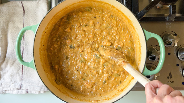- Cover the pot and cook over low heat for 1 ½ hours, stirring occasionally.