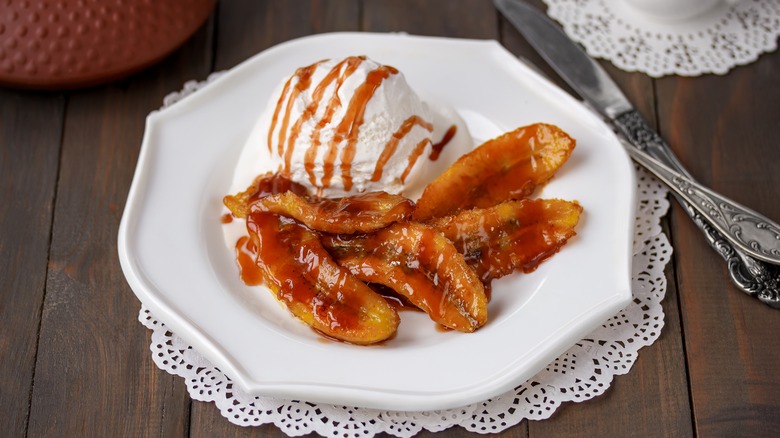 Bananas Foster was invented in New Orleans after one chef challenged another to create a dessert that used bananas, which at the time were shipped mainly through New Orleans' port into the U.S. The chef who created the dessert named it after a friend. You'll usually find the dessert served with vanilla ice cream. Just be aware that once the flames die down, the treat may not be fully free of alcohol; flambeed dishes can sometimes have as much as 75% of the alcohol left in the dish once the flames are out.
