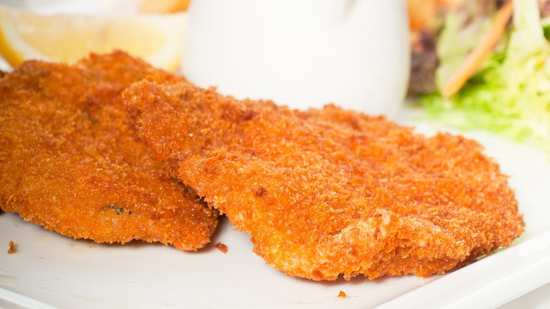 Let's head back to Patsy's Italian Restaurant for another of Sinatra's favorites: veal Milanese. This is a straightforward dish of breaded veal where the veal has been pounded very thin and the seasoned bread-crumb coating has been pan-fried into a crispy shell. Sinatra liked his to be extra crispy and almost paper-thin.