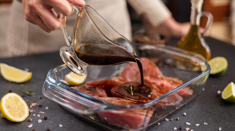 This process is aided by any salt and oil present in a marinade. "The salt in the marinade acts as a flavor enhancer and helps draw out moisture from the meat, which is then reabsorbed with the marinade's flavors for a richer taste," Shelke explains. When it comes to oil, she says, "Oil in the marinade serves to spread the flavor of spices and herbs evenly throughout the meat." Ergo, an effective marinade will include acid, oil, salt, spices, and other flavoring ingredients. By properly marinating your meat in these ingredients, you can perfect its texture and flavor.
