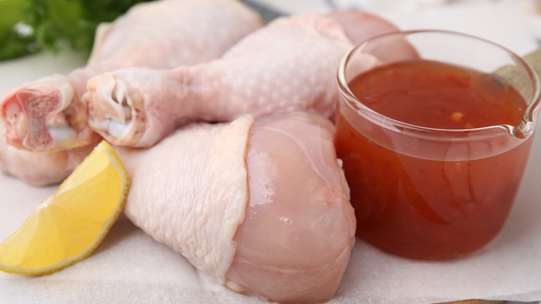 "The acids in meat marinades partially 'cook' the meat by denaturing its proteins. This helps to tenderize it and allows flavors to penetrate deeper," says Shelke. In practice, this "denaturing" means that the proteins in the meat start to break down. Proteins can be denatured in many ways — acid does it, as does cooking with heat. Exposing food to a lot of salt can also have the same effect. In the case of a marinade, this helps to tenderize the meat by loosening up those proteins — hence why you'd especially want to marinate tough cuts of meat. Those acids also loosen up the collagen in meat, another component that makes a cut tough. Marinating isn't the only way to do this — cooking collagen-heavy meat low and slow also has a denaturing effect.