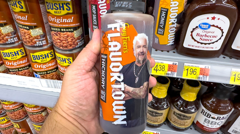 It stands to reason that the mayor of Flavortown would sell delicious barbecue sauce, and the Amazon reviews mostly reflect that. Guy Fieri's Flavortown BBQ Sauce comes in a variety of bold flavors, including Mop Sauce, Money Honey, Smokin' Hickory, Carolina, and Kane Brown's Tennessee. The Flavortown brand of barbecue sauces and condiments was released in spring 2024 featuring nine different flavors. "From your low and slow BBQ to your everyday sammiches, the right sauces can make or break your dish," Fieri said in a news release with co-developer Litehouse. He added that the Flavortown sauces will help you "step your game up and really sauce like a boss!" Flavortown BBQ Sauce variety pack has an Amazon rating of 4.3 stars. Kane Brown's Tennessee is especially popular among reviewers and is described as tangy with a bit of a kick.