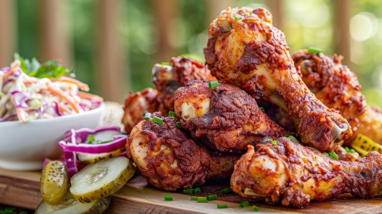 The flavor profile of this pizza seems bang on, but if you like the idea of elevating things just a little, consider using one or more homemade components. An obvious place to start is by whipping up a batch of pizza dough. You could use one of Drummond's own pizza crust recipes to really double down on The Pioneer Woman theme, or you could opt for an easy two-ingredient yogurt pizza dough. Other ideas include making your own barbecue sauce or using a different kind of slaw. However you decide to make it, you won't know whether to give Drummond's fried chicken pizza a solid thumbs up or thumbs down without actually trying it.