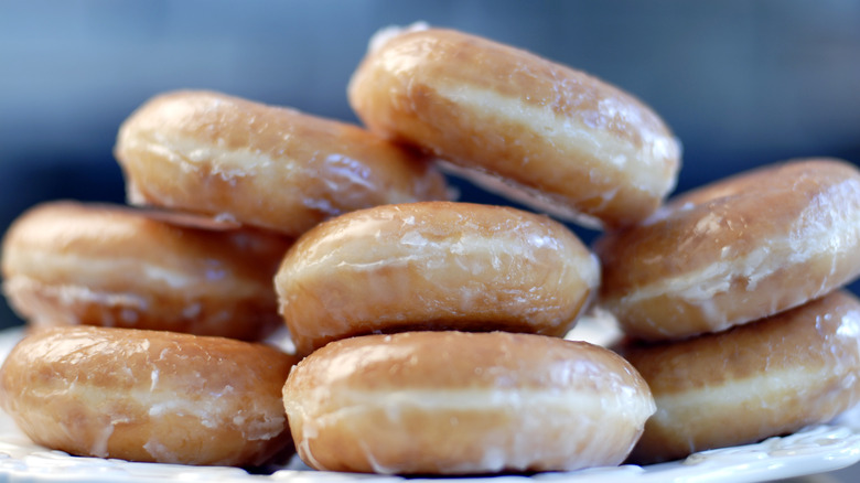 Before you start thinking of all the donut varieties you might want to use for your next breakfast sandwich, it's important to abide by the "raised and glazed" rule. Donut breakfast sandwiches should only be attempted with raised (sometimes called yeast) donuts that have only been sugar glazed for two main reasons. First, the crumbly texture of cake donuts just aren't going to keep it together structurally; and second, you need that high concentration of sugar glaze for caramelization — a glazed donut absolutely should be thrown on a griddle to get a crisp little char beforehand.